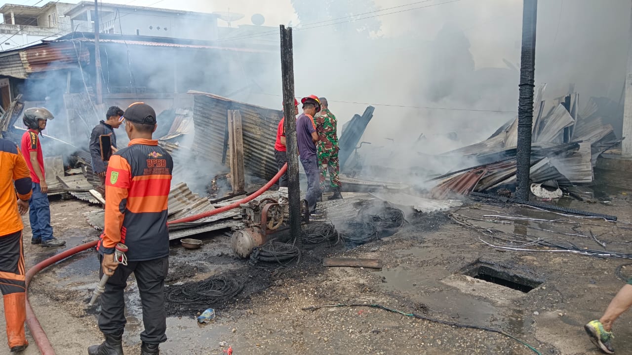 TEMBILAHAN – Kebakaran hebat melanda empat unit bangunan di Jalan Ahmad Yani, Parit 9, Kelurahan Tembilahan Hulu, Minggu (28/9/2025) sekitar pukul 09.20 WIB. Api dengan cepat membesar lantaran sebagian besar material bangunan terbuat dari kayu.