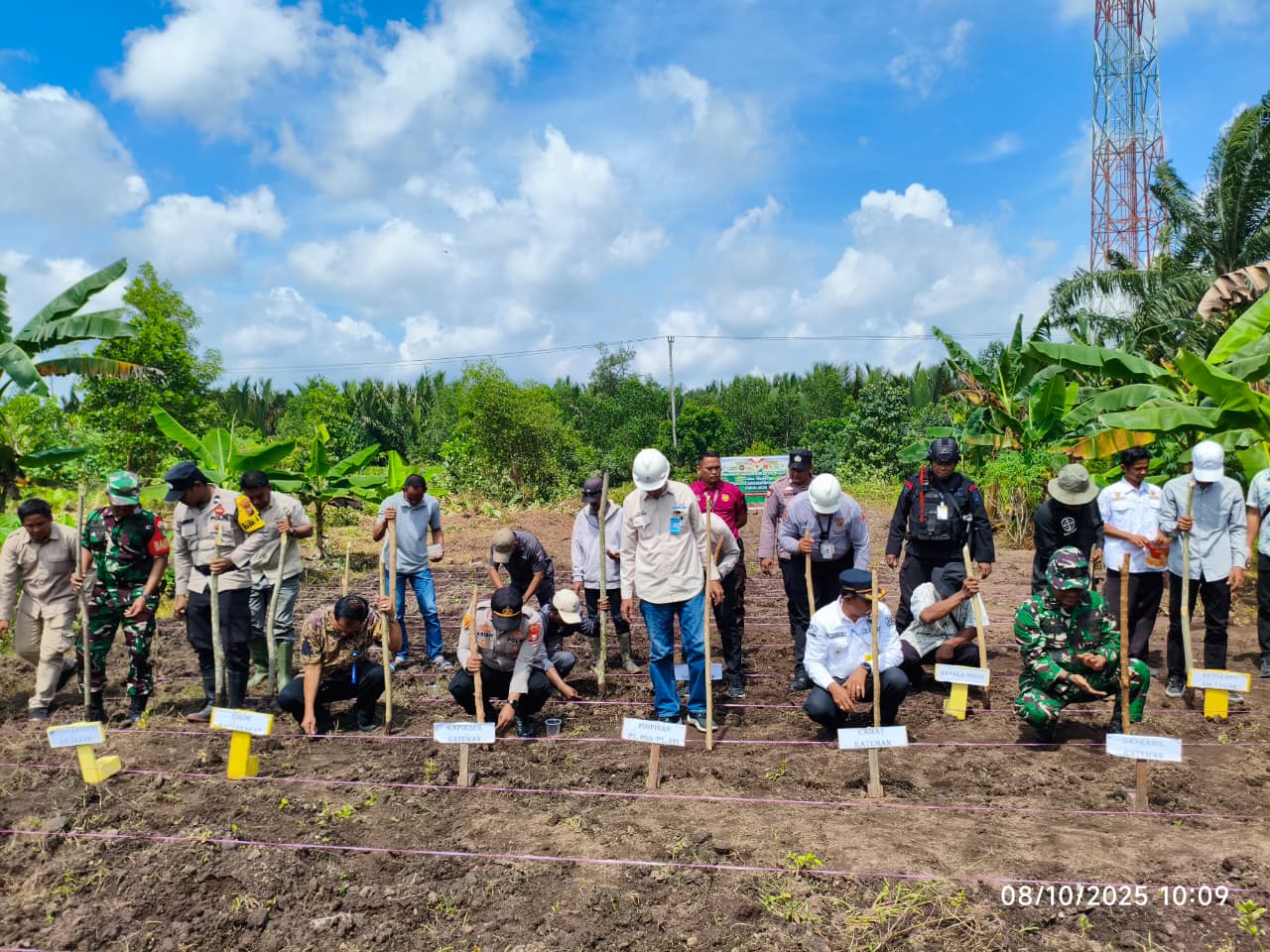 KATEMAN – Dalam rangka mendukung program swasembada pangan tahun 2025, Danramil 06/Kateman, Lettu Inf Delmy Armansyah, bersama unsur Forkopimcam Kateman menghadiri kegiatan Gerakan Penanaman Jagung yang digelar oleh Polsek Kateman di Parit 12, Desa Air Tawar, Kecamatan Kateman, pada Rabu (8/10/2025).
